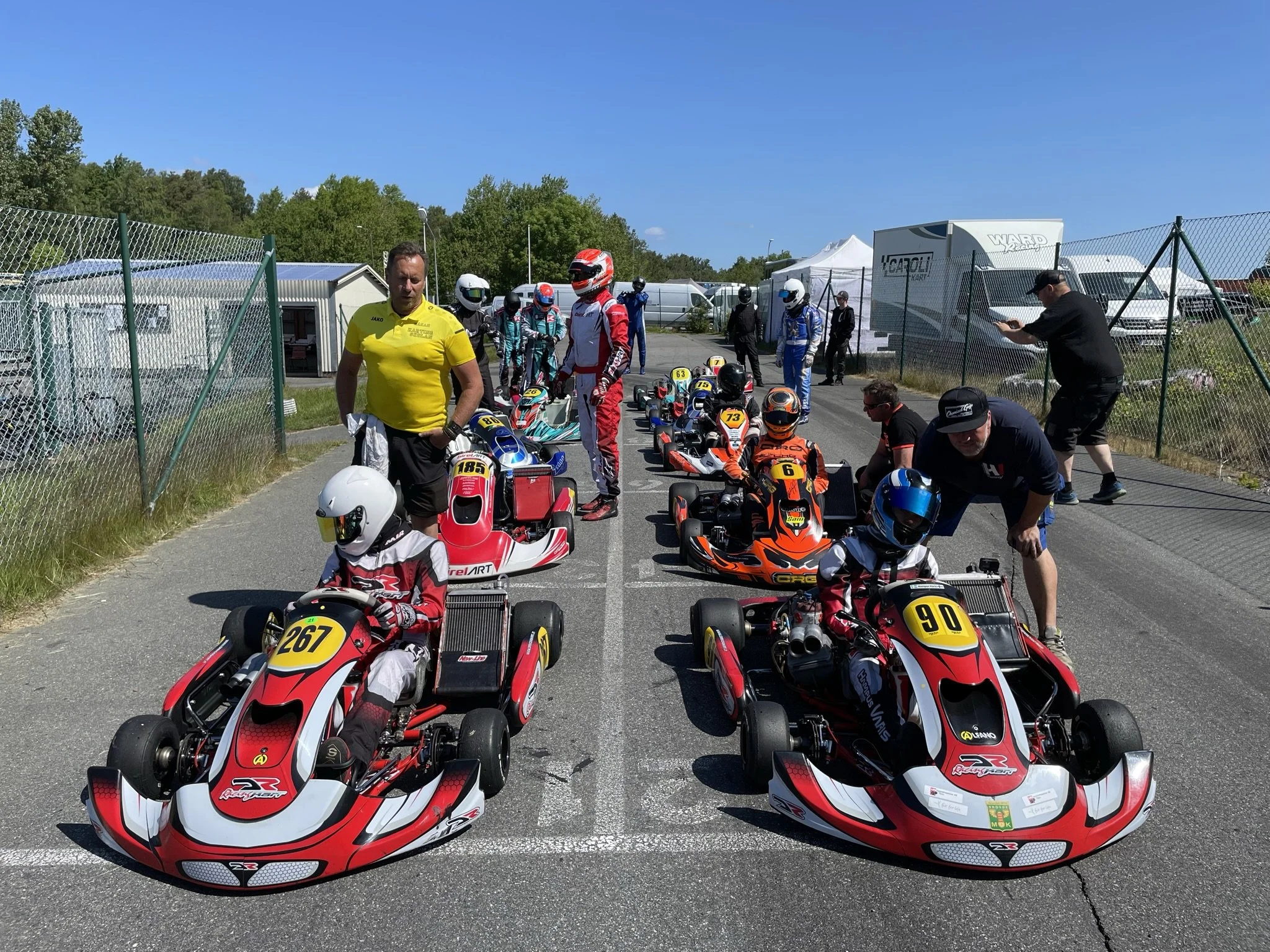 Hampus Varis snabbast i KZ2 under träningen och satte snabbaste tid i ett av kvalheaten i Göteborg när andra deltävlingen av Kart Cup Väst kördes helgen v22 i strålande solsken. Hampus som gjorde ett tillfälligt ihop i serien visade på fin form.